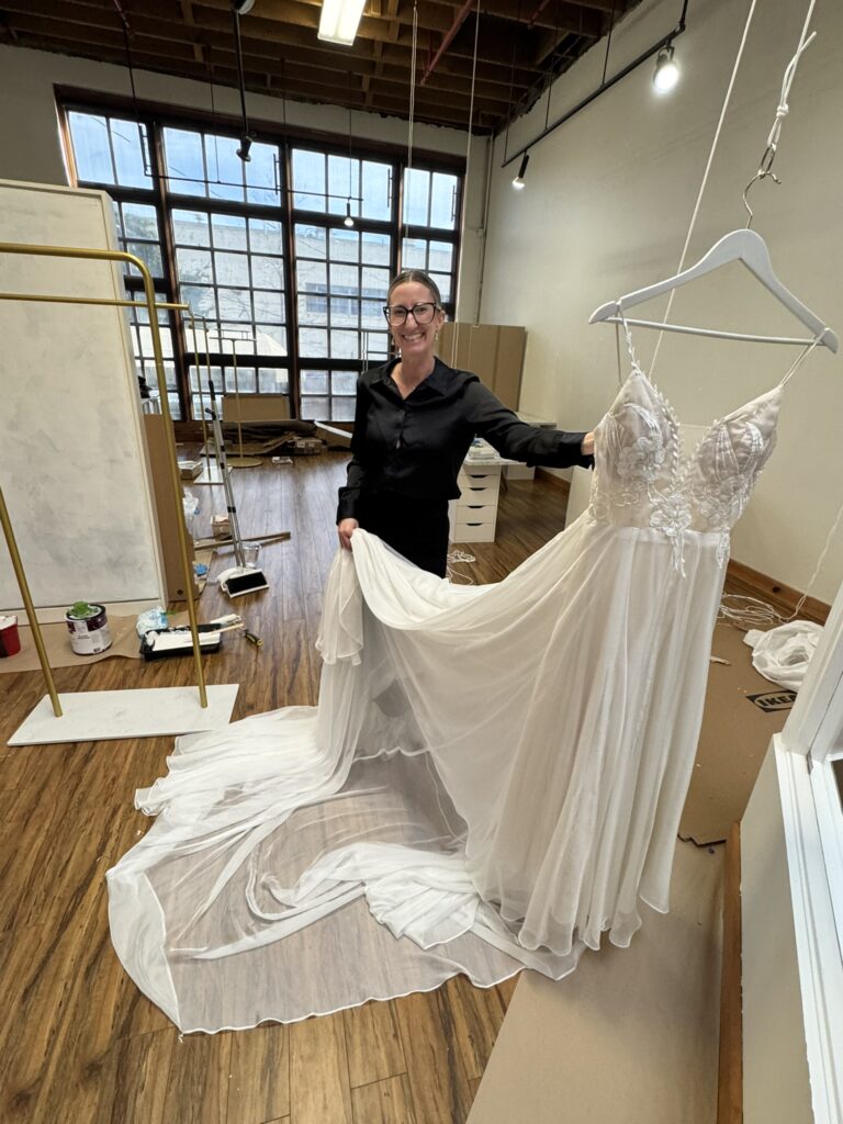 Catrina has been creating her incredible gowns and altering gowns for 17 years. As of February 1, Catrina Munoz Bridal has two spaces in Main Street Market, Suite D, where she has been for the past four years, where she will continue to meet brides, display gowns, and do fittings; and now Suite C in the back of the building (former home of Hawk Interiors), where the sewing will be done to create those gorgeous gowns and do alterations.